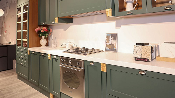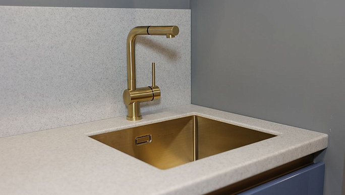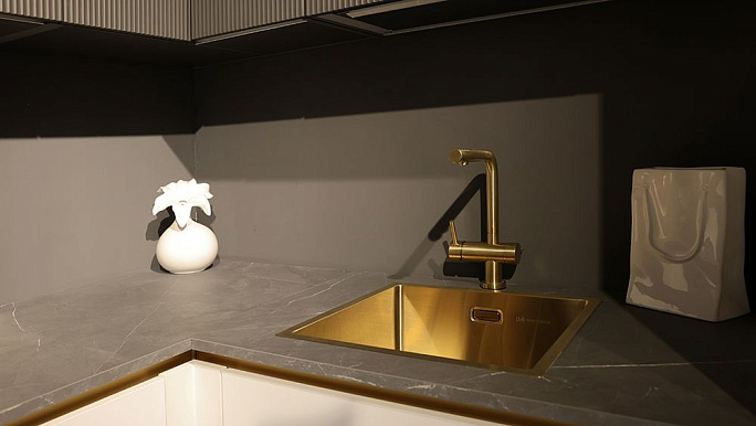 — Минимализм уже давно полюбился людям. Это однотонные фасады, прямые формы, монолитные кухни. Они подходят к любому интерьеру, не надоедают и могут простоять долгое время, — говорит София Трофимова. — Сейчас дизайнеры привносят больше индивидуальности, добавляя в качестве акцентов яркие цвета, например, индиго, розовый, зеленый, синий. Новый тренд чувственного дизайна — золотые и бронзовые элементы на кухне. Это фурнитура, профили, золотые мойка и смеситель, золотые рамки для открытых секций.
