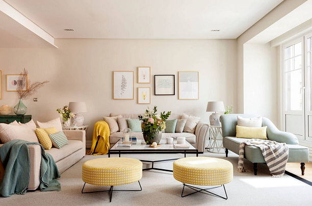 Отличным решением станет светлая гамма. Чтобы интерьер не выглядел стерильно, рекомендуем взять несколько пастельных оттенков и разбавить их контрастными элементами.