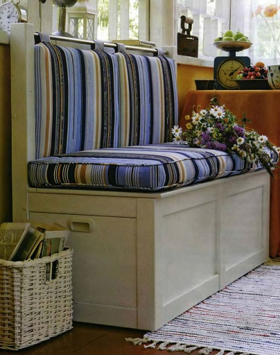 Здесь банкетки и пуфы облегчают надевание обуви и позволяют ставить на них сумки и другие предметы. Если мебель дополнена дополнительным ящиком для хранения, то там можно организовать полезное пространство.