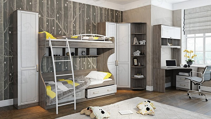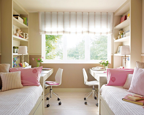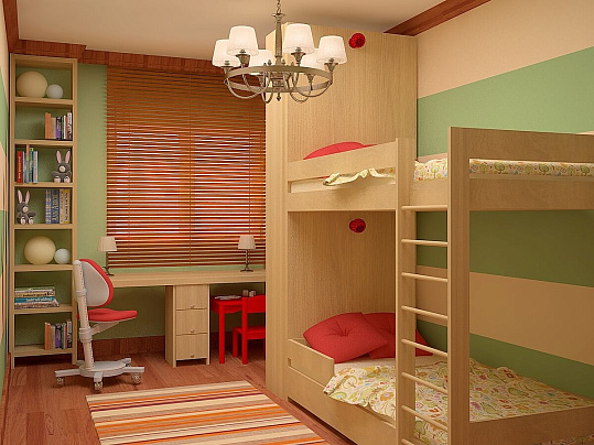 Эти варианты можно совмещать. К примеру, организовать общую зону для учебы и разделить ее на два рабочих места. А зоны для игр и сна расположить в разных частях комнаты.