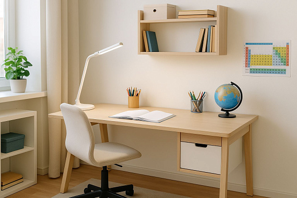 Грамотно организованное место для учебы помогает ребенку сосредоточиться, сохранять здоровье и формировать правильные привычки. Учитывайте три главных аспекта - мебель по росту, правильное освещение и удобную систему хранения. А конфигурацию подбирайте в зависимости от возраста: от простого стола с лампой у первоклассника до полноценного рабочего кабинета у старшеклассника.