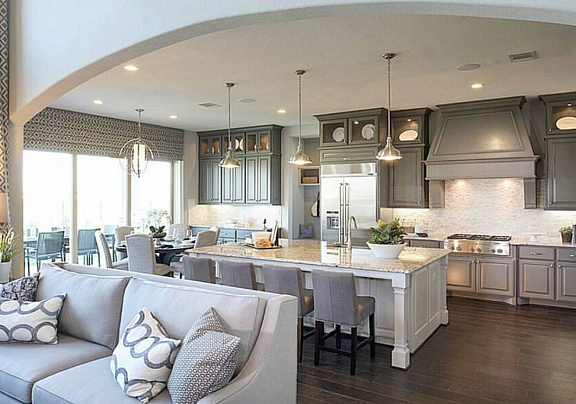 Кухня-гостиная позволяет хозяйке или хозяину готовить и одновременно общаться с близкими, смотреть телевизор, контролировать детей. Теперь приготовление пищи не изолирует человека от остальной жизни дома. А еще в таком пространстве проще присматривать за детьми - во время готовки вы будете видеть ребенка, который находится в более безопасной зоне без острых ножей и горячих кастрюль.