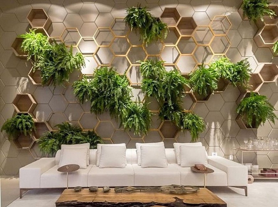 Она представляет собой стену, сотканную вьющимися растениями. Они расстилаются по поверхности и тем самым создают некое подобие перегородки. С помощью такого фитомодуля можно отделить функциональные зоны в доме. Это решение особенно актуально для квартир со свободной планировкой. Зеленую стену можно поставить между прихожей и гостиной или кухней и гостиной.