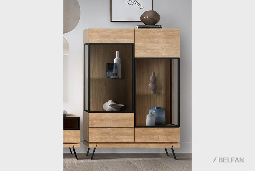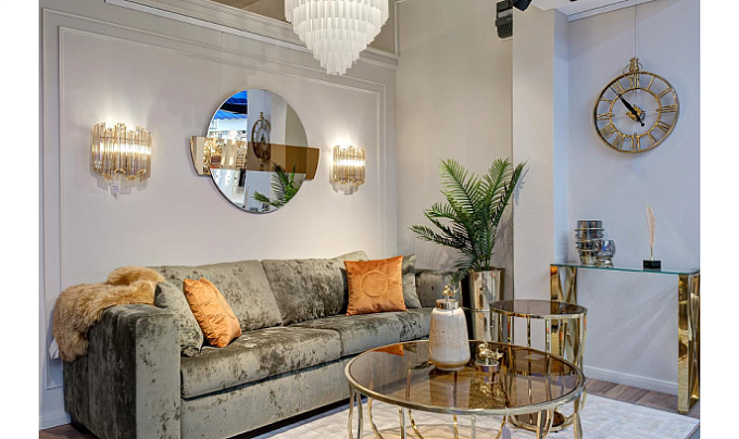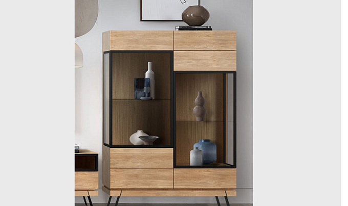 - Мебель со стеклянными элементами. Стеклянные столы, витрины и полки визуально облегчают интерьер. Они не перегружают пространство и отлично подходят для небольших помещений. Особенно популярны журнальные столики и обеденные группы со стеклянной столешницей.