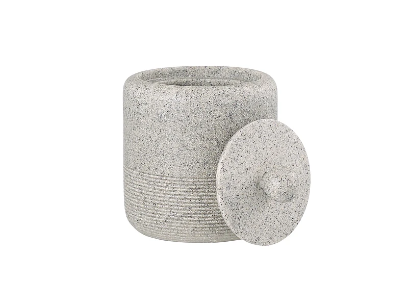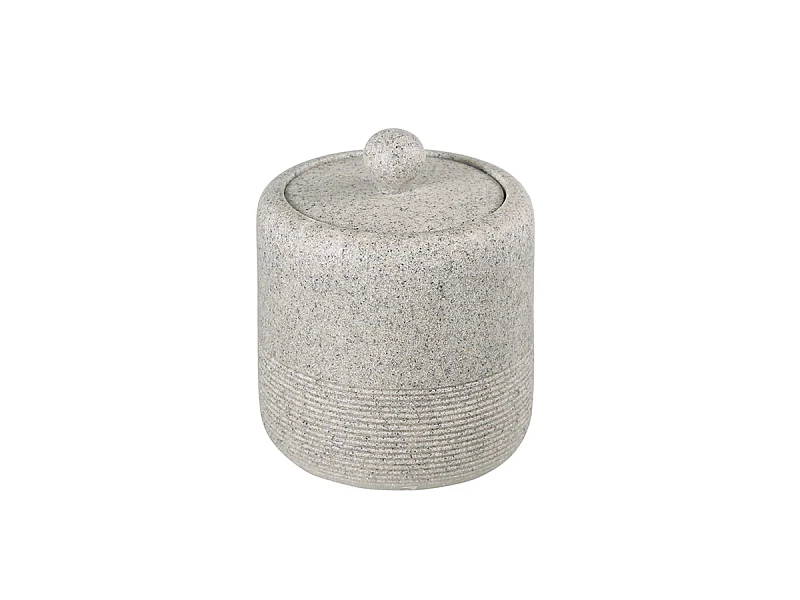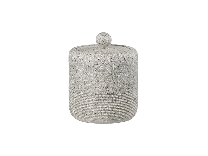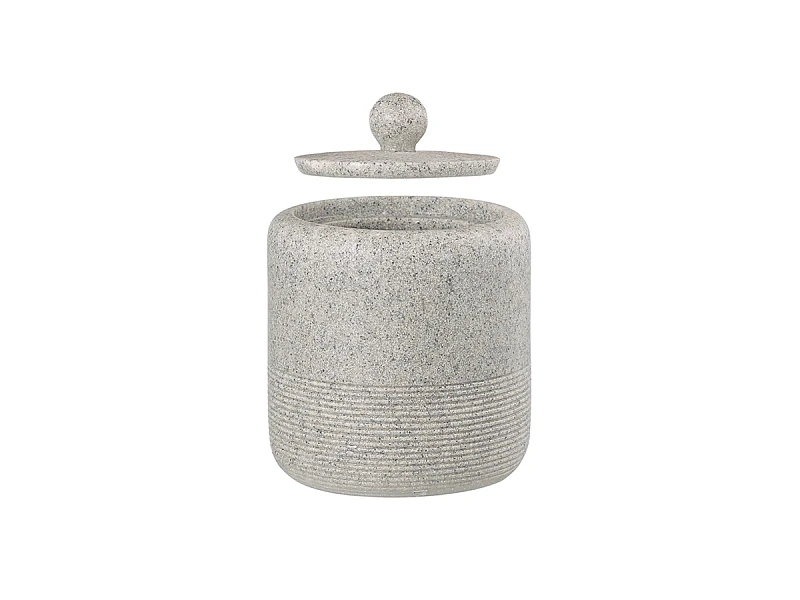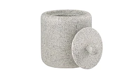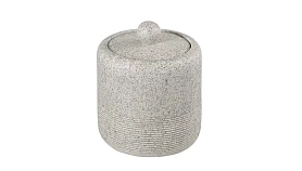 Банка для хранения Loup имеет корпус и крышку из полирезина, стилизованного под натуральный камень темно-серого оттенка. Материал легко моется, отличается устойчивостью к влаге, ударам и царапинам, что делает его идеальным выбором для ванной комнаты. Емкость компактных размеров занимает минимум места на полке или в шкафу. В такой банке можно удобно хранить средства гигиены и другие предметы личного пользования.