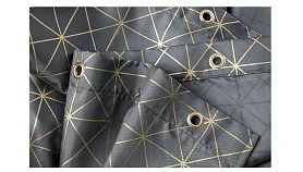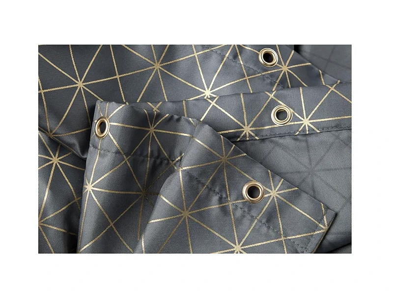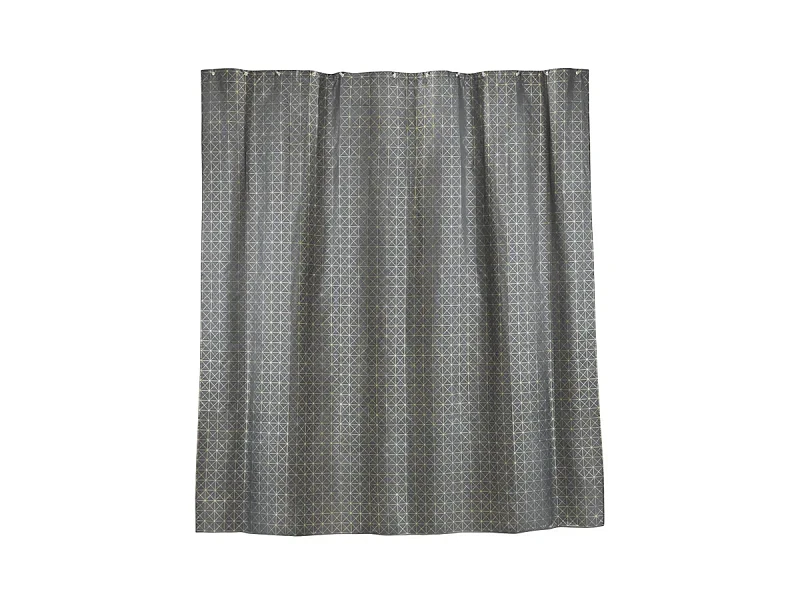 Шторка для ванной комнаты Grid выполнена из качественной водонепроницаемой ткани. Такой аксессуар позволит поделить ванную комнату на несколько функциональных зон. Занавеска выполнена в сером цвете. На фоне полотна красуются ровные золотистые линии, которые, пересекая друг друга, создают причудливые узоры.