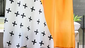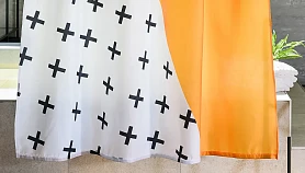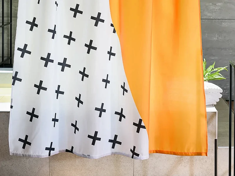 Занавеска для ванной комнаты из полиэстера. Имеет размер 180х200мм. Плотный износостойкий материал прост в уходе и надежно защищает от нежелательных брызг и лишней влаги за счёт специальной пропитки.