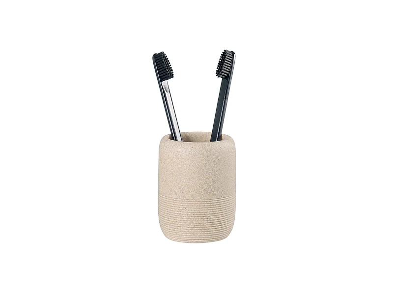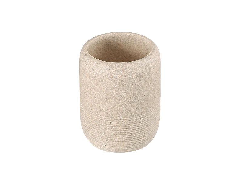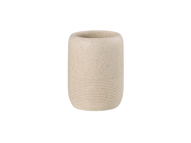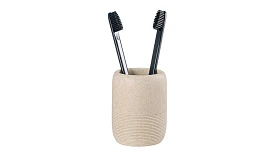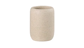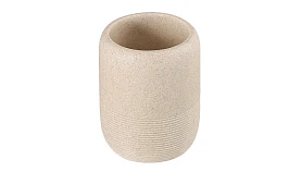 Стакан для зубных щеток Loup имеет корпус из полирезина, стилизованного под натуральный камень бежевого оттенка. Материал легко моется, отличается устойчивостью к влаге, ударам и царапинам, что делает его идеальным выбором для ванной комнаты. Емкость компактных размеров занимает минимум места на раковине или полке.