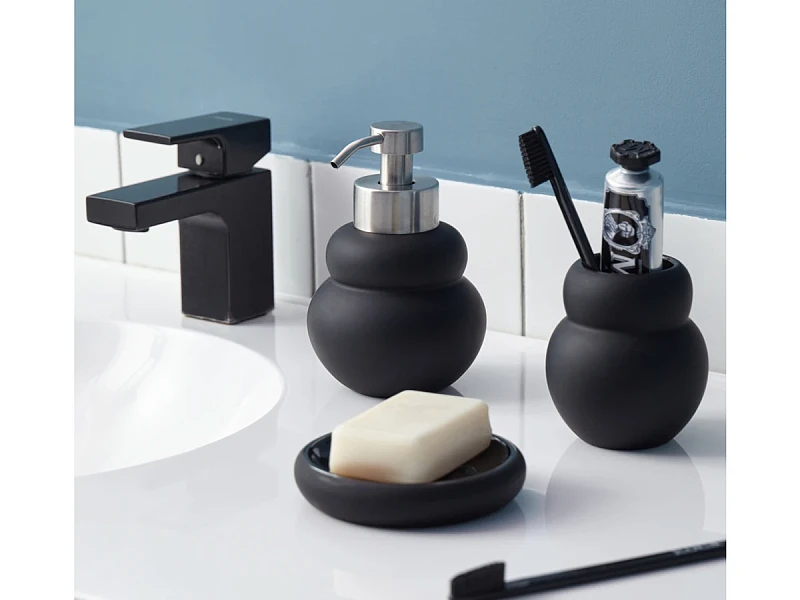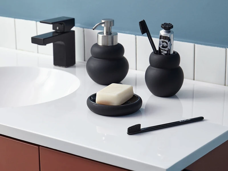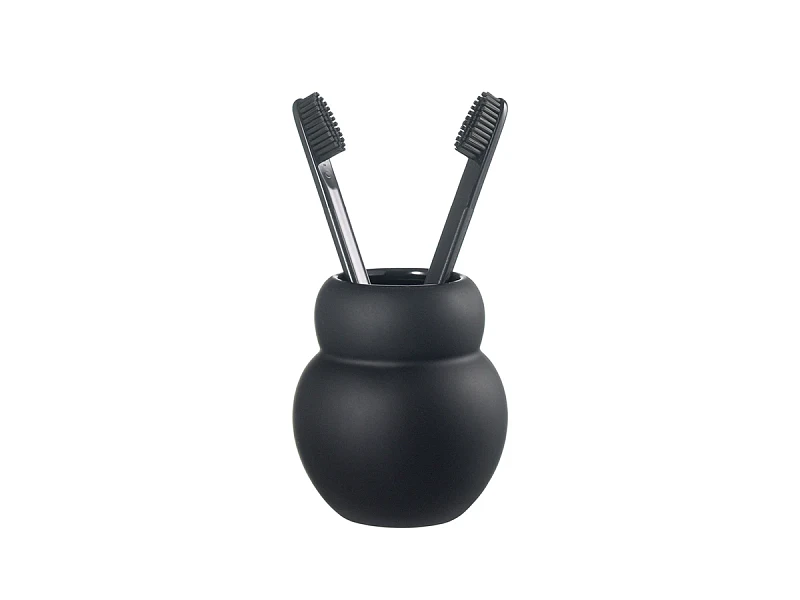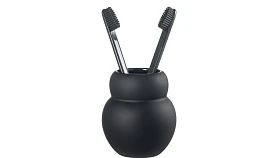 Стакан для зубных щеток Mark выполнен из керамики с матовым покрытием черного цвета. Материал экологичный, устойчив к воздействию влаги и температурным перепадам. Емкость компактных размеров занимает минимум места на раковине или полке. Комбинация матовых и глянцевых фактур делает дизайн интересным.