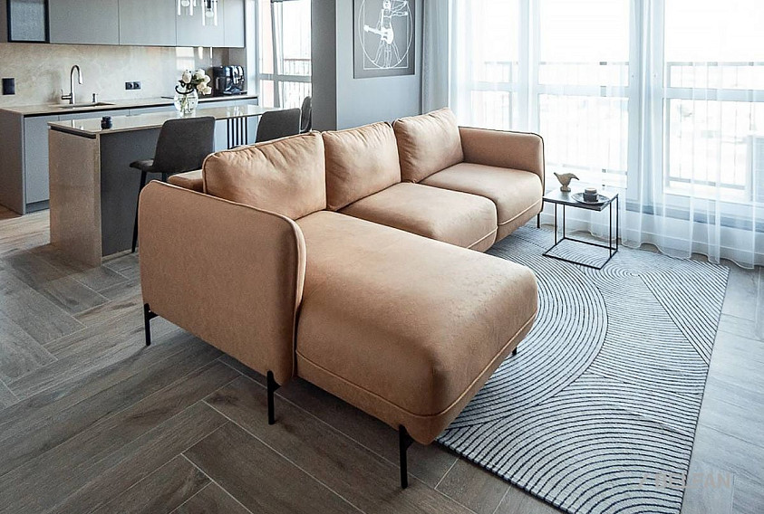 Привлекательный дизайн «Алекс» прекрасно смотрится как в современном лофте, так и в классическом интерьере, в зависимости от выбранной обивки. Благодаря прямым линиям боковин, декоративным швам и канту вдоль подушек, создается яркий визуальный акцент. Прочные металлические опоры, созданы специально для данной коллекции, подчеркнув его неповторимость и эксклюзивность, так же они идеально подходят по высоте для робот-пылесоса. Цвет опор возможно исполнить в трех оттенках: черный, золотой и марципан. В диван-кровать встроен удобный и эргономичный механизм для ежедневного и гостевого сна.