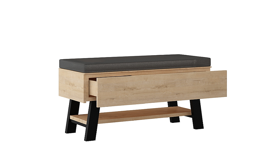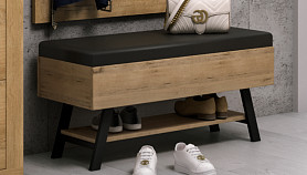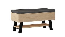 Брутальная модель сочетает в себе признаки сразу двух интерьерных стилей — колониального и лофт. Мягкий каркас выполнен из черной экокожи, цвет основания «дуб бунратти» имитирует природный рисунок древесины. Наполнение сиденья — плотный пенополиуретан. При изготовлении изделия был использован МДФ-профиль с дополнительной облицовкой кромок высококачественным материалом.