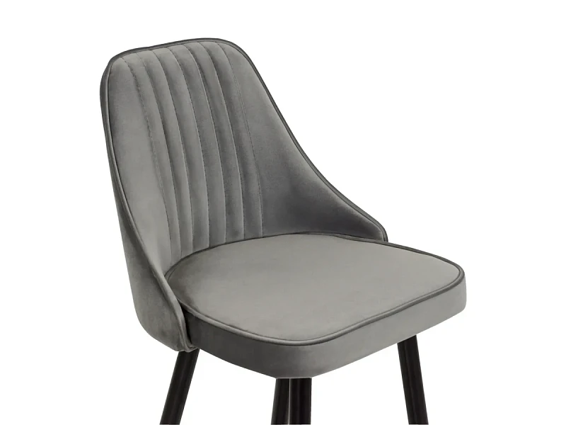 Стул на металлических опорах черного матового цвета. На опорах предусмотрены защитные пластиковые накладки, защищающие пол от царапин. Металлический каркас. Ткань велюр. Наполнение: формованный высокопрочный пенополиуретан.