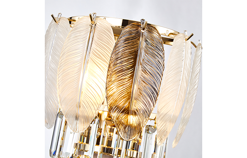Отображение природных мотивов в предметах интерьера всегда выглядит утонченно и изящно. Это можно сказать и о нашей коллекции Dolor. Каркас коллекции в цвете золота оформлен декоративными лепестками из белого и серого стекла, которые обрамляют хрустальный водопад кристаллов высшего качества прямоугольной формы.
