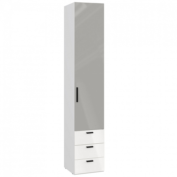 Шкаф 1дв., 3ящ., 5щит.полок гл.400 (дв.серый глянец) Chelsea белая