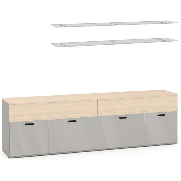 Тумба под телевизор Челси серая с двумя навесными стеклянными полками Челси серая
