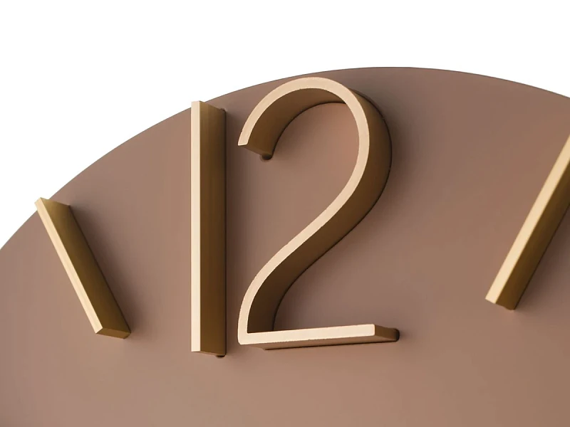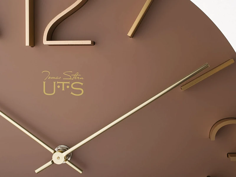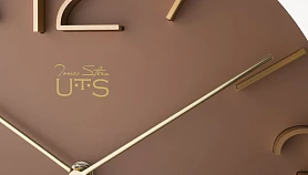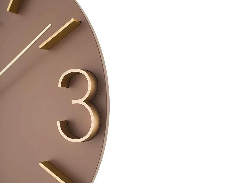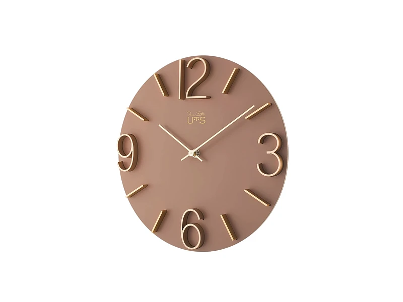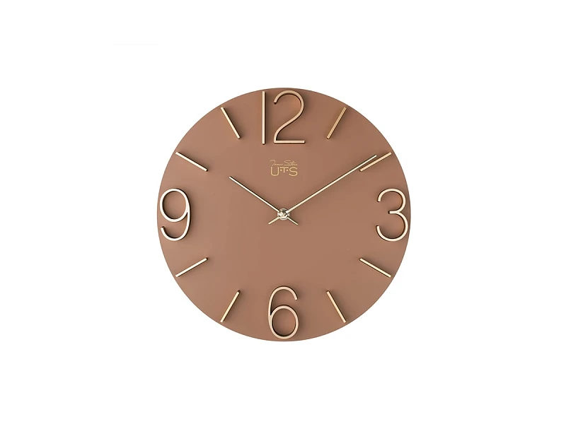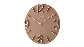 Настенные часы в лаконичном современном стиле. Основная часть корпуса выполнена из МДФ и тонирована в грязно-розовом цвете. Арабские цифры 3, 6, 9 и 12, а также часовые индексы выполнены из матового алюминия золотого цвета и установлены в, филигранно выполненные, ложементы на корпусе. Тонкие и изящние алюминиевые стрелки отполированы до зеркального эффекта. Кварцевый механизм Young Town (Гонконг). Требуется 1 батарейка типа АА (не включена в поставку).