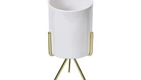 Оригинальное интерьерное кашпо небольшого объема. Выполнен из керамики на металлических ножках-подставках.