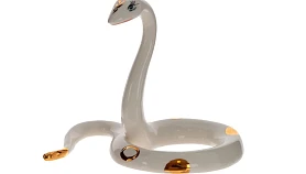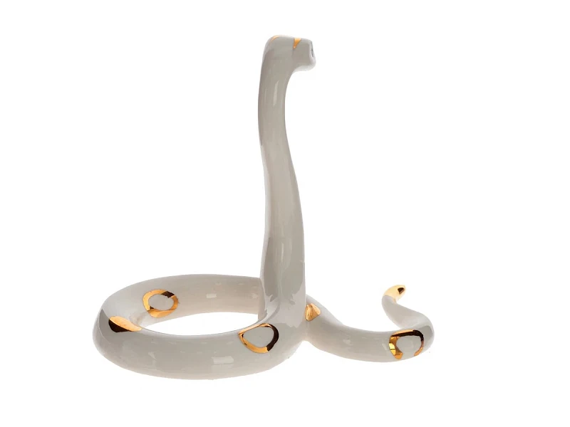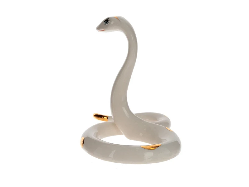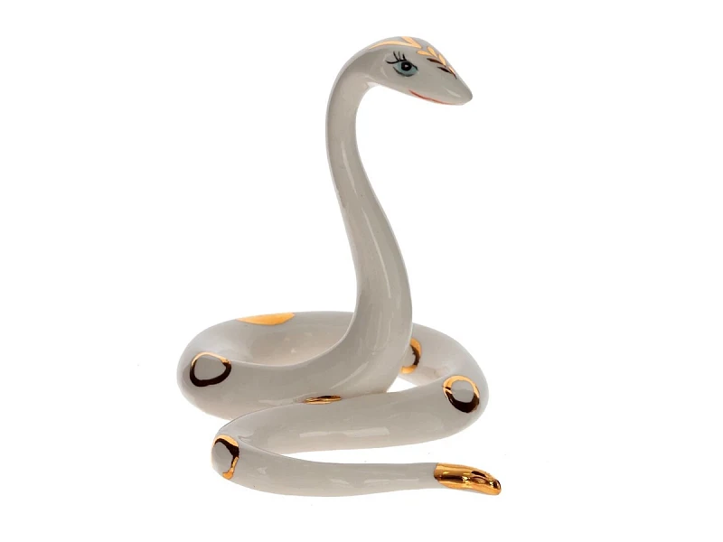 Утонченная фарфоровая статуэтка в форме белой змейки с позолоченным рисунком станет изысканным украшением вашего интерьера. Выразительные глаза придают ей особую привлекательность, а изящные изгибы тела создают ощущение движения и грации. Разместите ее на полке, столе или камине - она станет стильным акцентом, добавляя элегантности и утонченности любому пространству.