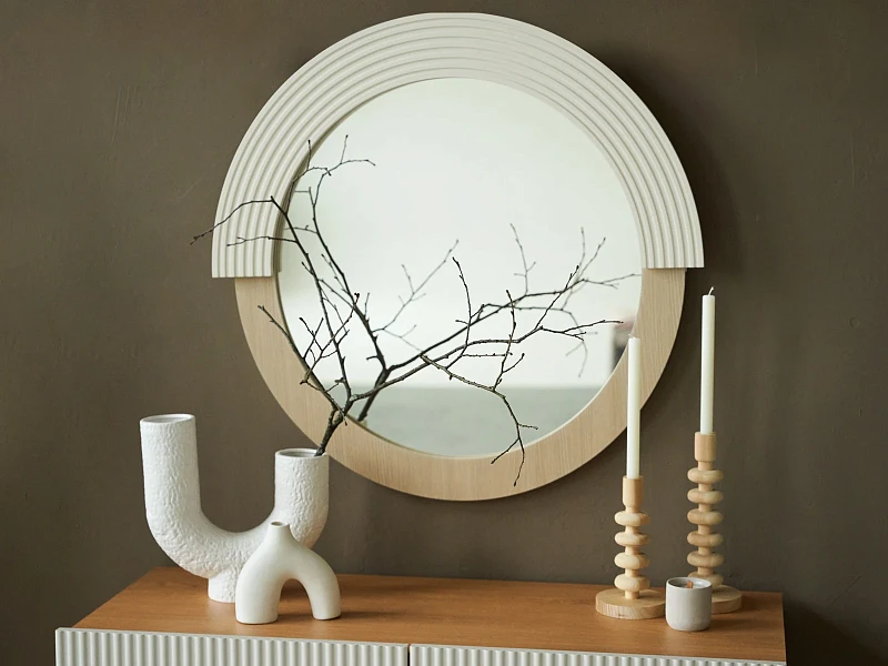 Круглое зеркало Merch можно использовать как самостоятельный предмет в прихожей, спальне, гардеробной, гостиной или в качестве дополнения к консоли, комоду, журнальному столику, креслу, бьюти-локации. Рама выполнена из плиты МДФ. Вы можете выбрать вариант с эмалью или с облицовкой пленкой ПВХ.