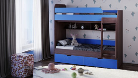 Очень практичная и удобная модель, занимает в комнате место, как одно спальное место, а по факту Вы получаете два спальных места и большие, прочные выкатные ящики в . Двухъярусная детская кровать «Юниор-5» - практичная и удобная модель для детской девочки или мальчика, в зависимости от цветового исполнения. Цвет фасада можно выбрать из предоставленной палитры, благодаря чему у вас есть возможность заказать кровать нужного цветового исполнения, которая органично впишется в интерьер. Это удобная и практичная модель, которая позволяет рационально использовать пространство комнаты. Ведь она занимает место одной кровати, но при этом вы получаете два полноценных спальных места в одном предмете интерьера.