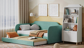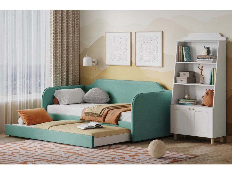 Кровать выдвижная детская Велди 90 Велюр Мятный