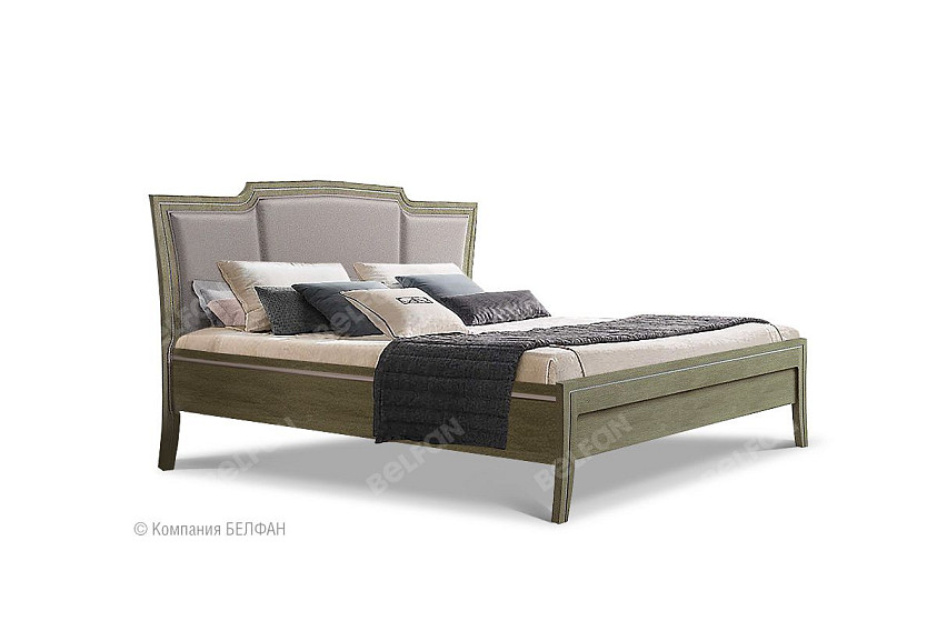 Изысканная кровать из коллекции «Costa» выполнена в современном классическом стиле. Мягкое изголовье, обитое нежнейшей тканью, высокие гнутые ножки, эксклюзивное глубокое крашение «олива» с отделкой белой патиной, все это превращает кровать в уникальный предмет интерьера и любимое место в каждой спальне.