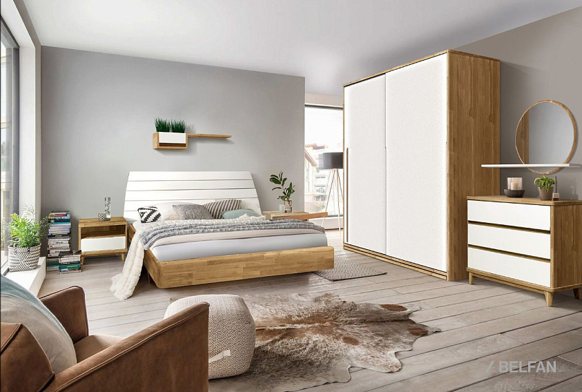 ? Кровать в цвете «бейц-масло» полностью изготовлена из массива дуба. Кровать в цвете «бейц-масло, белый» изготовлена из комбинации материалов – корпус из массива дуба, изголовье из плиты, покрытой белой эмалью.