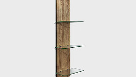 ? Полка изготовлена массива дуба и стекла.