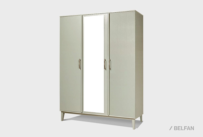 Шкаф 3-х дверный "Chicago" (Чикаго) с зеркалом шириной 170 см. За дверками слева секция с 5 полками и в правой части штанга для белья. Шкаф 3-х дверный "Chicago" выполнен в цвете "платина" и "агат".