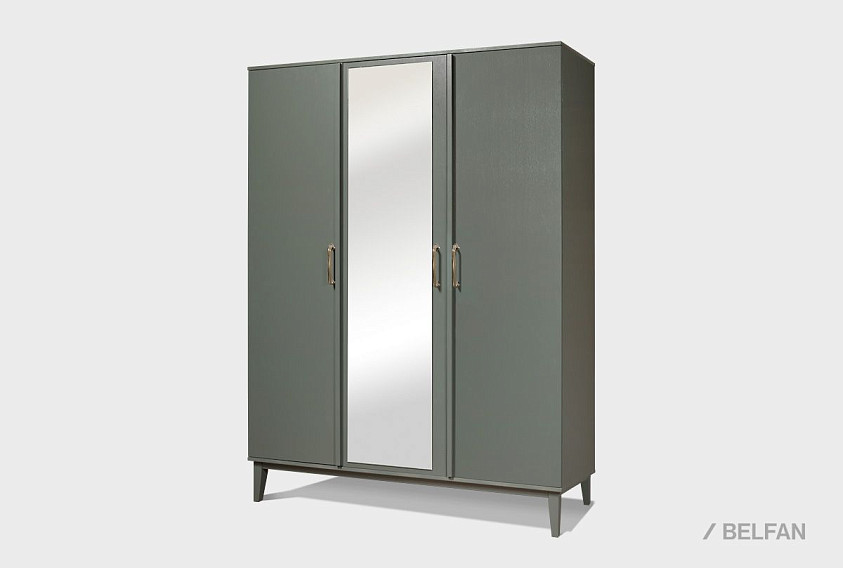 Шкаф 3-х дверный "Chicago" (Чикаго) с зеркалом шириной 170 см. За дверками слева секция с 5 полками и в правой части штанга для белья. Шкаф 3-х дверный "Chicago" выполнен в цвете "платина" и "агат".