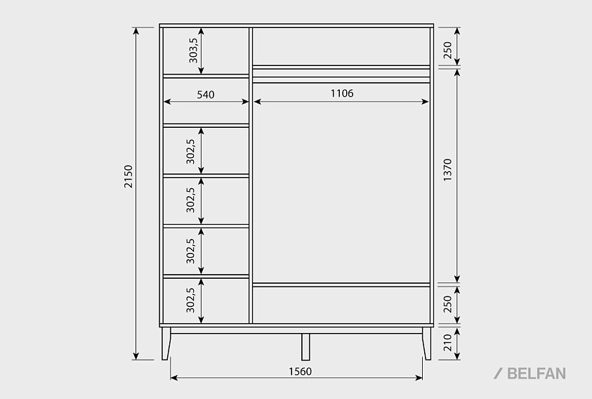 Схема шкафа 3-х дверного "Chicago":