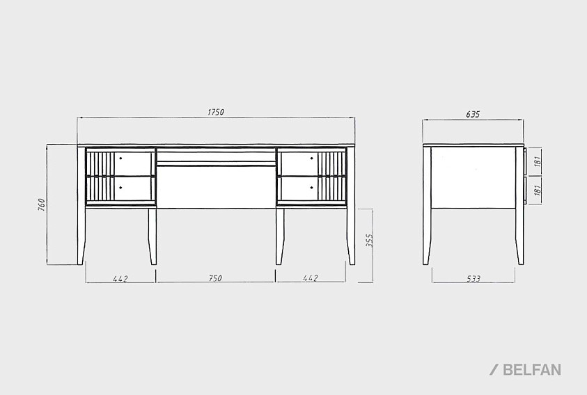 Схема стола письменного Chicago (Чикаго) с двумя тумбами: