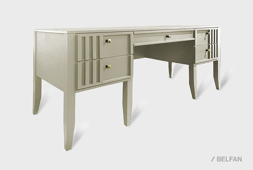Стол письменный Chicago (Чикаго) с двумя тумбами. Утонченная сдержанность лаконичных форм и эффектные реечные фасады. Стол письменный двухтумбовый выполнен в цвете "платина" и "агат".