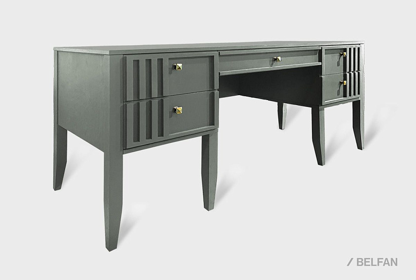 Стол письменный Chicago (Чикаго) с двумя тумбами. Утонченная сдержанность лаконичных форм и эффектные реечные фасады. Стол письменный двухтумбовый выполнен в цвете "платина" и "агат".
