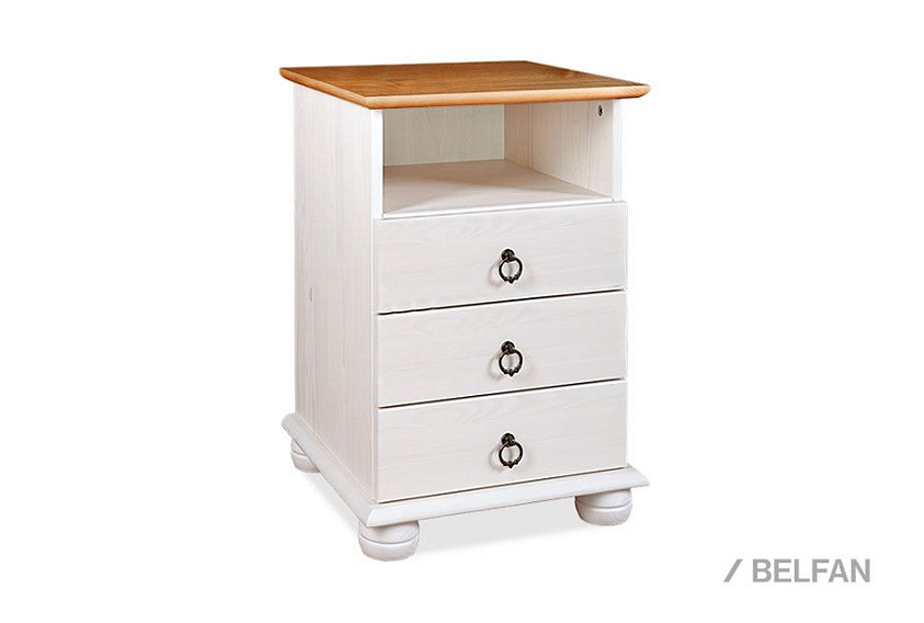 Тумба «Хельсинки-03» (Helsinki) из массива сосны оборудована тремя выдвижными ящиками и открытой нишей. Прекрасно подойдёт для Вашей спальни или для рабочего места. Тумба не занимает много места, при этом довольно вместительная. В комплект входит: деревянные неподвижные ножки и ножки на колесах.