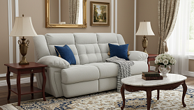 Износостойкая обивка гарантирует привлекательный вид мебели даже после нескольких лет эксплуатации. Искусственная замша сливочного цвета с удивительной текстурой выглядит стильно и благородно. Элегантность материала подчеркнута стяжкой на спинке и отстрочкой на подлокотниках;