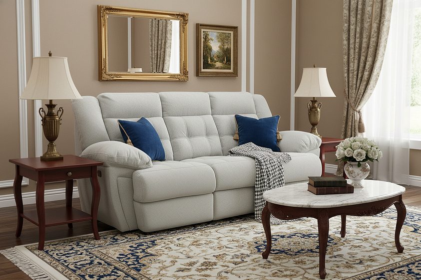 Плотность обивки — 330 г/м.кв, стойкости к истиранию — 30 000 циклов;