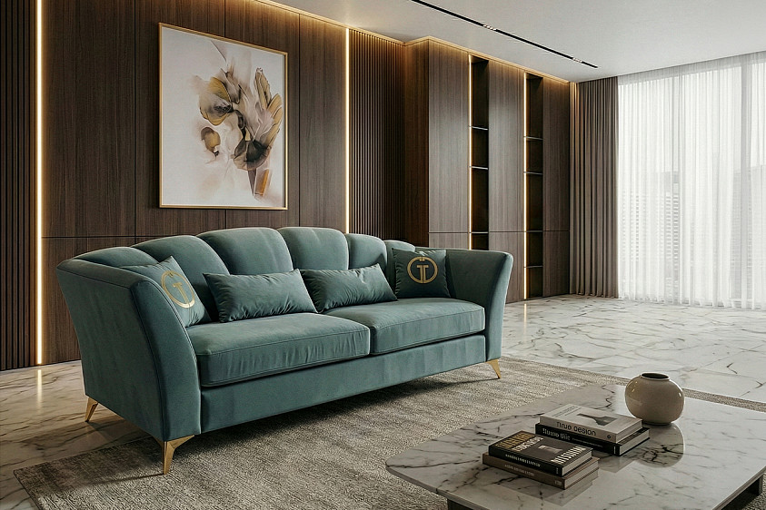 Диван Annette трехместный без мех,велюр бирюз.Colt1004/зол 250*100*95