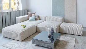 Семейство модульной мягкой мебели, способной легко интегрироваться в различные пространства от маленьких комнат до просторных помещений с открытой планировкой. Главная особенность в том, что модули позволяют обходиться без дополнительных предметов. Каждый элемент может сыграть любую роль от пуфа до столика. С ними можно организовать уютные уголки отдыха, спальные места, игровую площадку, мягкий остров в центре комнаты для большой компании. Вариативность конфигураций: п-образный, угловой, прямой — несколько блоков позволяют изменить обстановку за пару минут. Минималистичная геометрия, качественное исполнение поддержат гармоничный интерьер, в основе которого — функциональность, мобильность и комфорт.