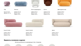 Коллекция диванов, кресел, кушеток, пуфов, дизайн которых сфокусирован на округлых мягких формах. Это и дань актуальным трендам, и стремление к позитивному «обволакивающему» пространству, располагающему к уютному отдыху. Смелые объемы, плавные линии привнесут в интерьер динамику, свежесть, пластичность. Закругленные элементы, фактурные обивки, естественные оттенки создают атмосферу комфорта и дружелюбного притяжения. Высокие спинки, плавно перетекающие в подлокотники, обеспечивают эргономичную поддержку и чувство безопасности, уединения.