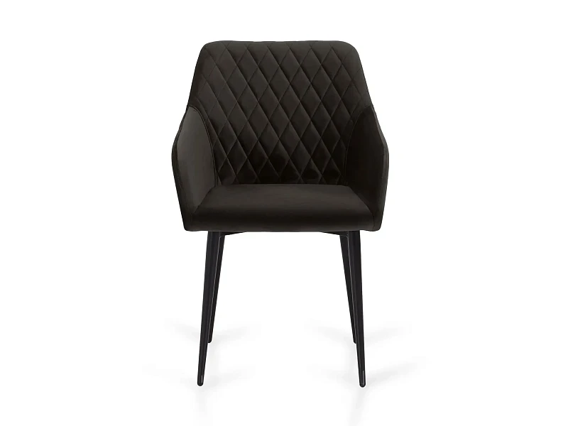 Роскошный и уютный стул в стиле арт-деко. Смотрится дорого, стильно и эффектно. Оно создано, чтобы очаровывать с первого взгляда. Плавные линии, изящные ножки, просторное сиденье и высокие подлокотники делают модель невероятно удобной для отдыха. Стильная отделка ромбом на спинке и сиденье в сочетании с благородным бархатом создает неповторимые переливы и придает стулу особую утонченность. Мягкий бархатистый велюр, высококачественный материал с повышенной износостойкостью. В качестве наполнителя используется литой (формованный) пенополиуретан высокой плотности. Металлические ножки черного матового цвета. На ножках предусмотрены специальные пластиковые накладки, которые придают стулу дополнительную устойчивость и защищают пол от царапин.