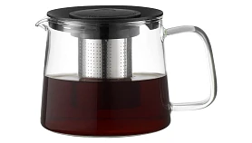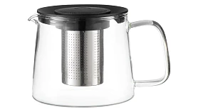 Заварочный чайник из прозрачного стекла великолепно впишется как в повседневную, так и праздничную сервировку стола. Наличие фильтра позволит насладиться чистым напитком без посторонних примесей. Емкость имеет большой объем, благодаря чему идеально подходит для уютных чаепитий в кругу семьи и друзей. Материал изготовления отличается устойчивостью к износу, легко очищается от загрязнений. Материал: боросиликатное стекло, нержавеющая сталь. Объем: 1 л. Посуду рекомендуется очищать от загрязнений в теплой воде с помощью мягкой губки с жидким средством. Допускается мытье в посудомоечной машине. Запрещается использование абразивных материалов и агрессивной бытовой химии.