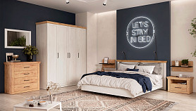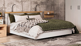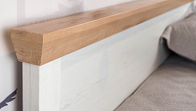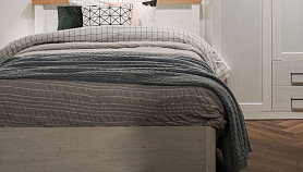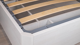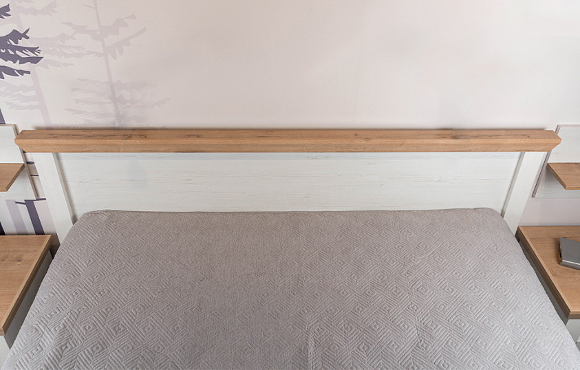 Модель с ортопедическим основанием из березовых ламелей предназначена для комфортного отдыха и здорового сна. Универсальное цветовое решение подойдет для интерьера в стиле кантри, прованс, сканди, облегченный лофт, минимализм, классика. Удачное сочетание древесной текстуры «дуб бунратти» с нейтральным оттенком «блан-шене» создает умиротворяющую атмосферу, которая так необходима в спальне.