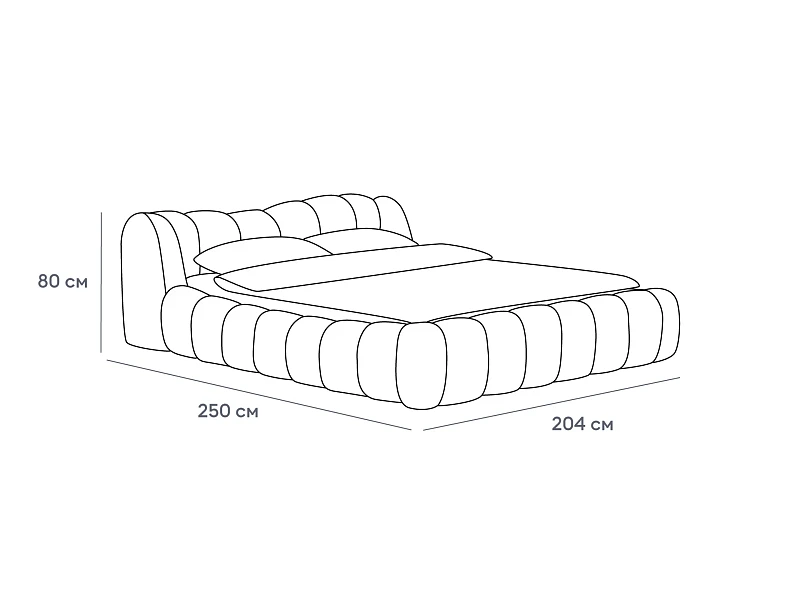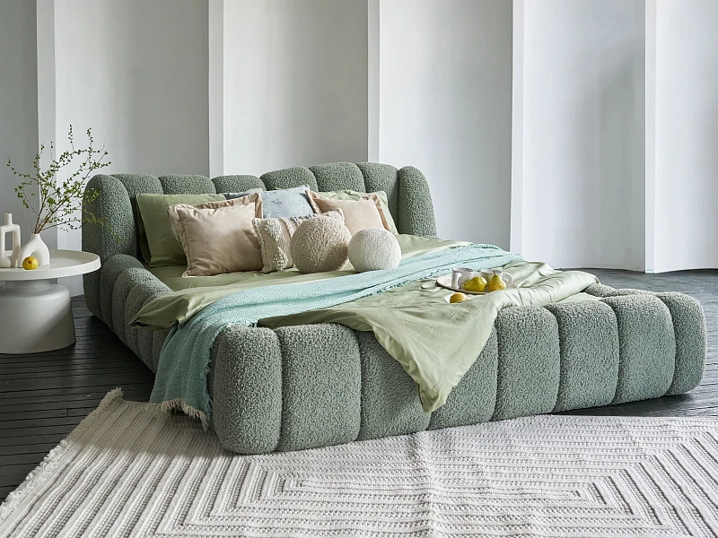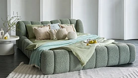 Litta — кровать, которую вам не захочется покидать! Создана для максимального расслабления. Визуально напоминает нежный круассан своими пышными пропорциями и мягкими линиями. Она будет баловать ваше тело и радовать глаз. Эстетика повышенного комфорта в объемных тактильных царгах и уютном изголовье. Которое состоит из восьми модулей. Вид спинки имитирует декоративную утяжку. Что добавит фактурности и многослойности в интерьер.