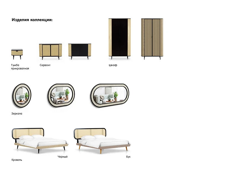 Коллекция предметов мебели для спальни с использованием декор-ротанга. Оригинальный дизайн сосредоточен на контрастных сочетаниях. Гармония природы — главный лейтмотив линейки. Который выражен в лаконичной геометрии, использовании натуральных материалов: деревянного бруса, массива бука, естественных оттенках. Каждая деталь кроватей, шкафов, тумб, сервантов, зеркал поддерживает настроение спокойствия и умиротворения. «Ажурные» элементы плетения из искусственного ротанга добавляют теплоты, объёма и эксклюзивности. Рельефные текстуры отвечают за живость, динамику, разнообразие. Благодаря «текучему» характеру, данные модели органично впишутся в пространства с намёком на эко, минимализм, бохо, этнику, эклектику и привнесут концепцию осязаемого комфорта с визуальной непринужденностью.