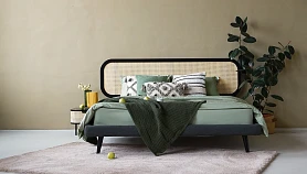 Изголовье представляет собой рамку из плиты МДФ с натянутым полотном из искусственного ротанга.