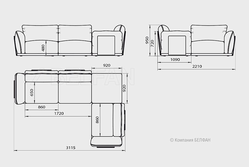 ? Каркас сиденья, спинок, подлокотников: основные несущие детали - цельная древесная плита, усилена деревянными брусками. Рамочная конструкция из МДФ 15 мм. Каркасы оклеены ППУ 10мм и синтепоном.