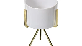 Оригинальное интерьерное кашпо небольшого объема. Выполнен из керамики на металлических ножках-подставках.