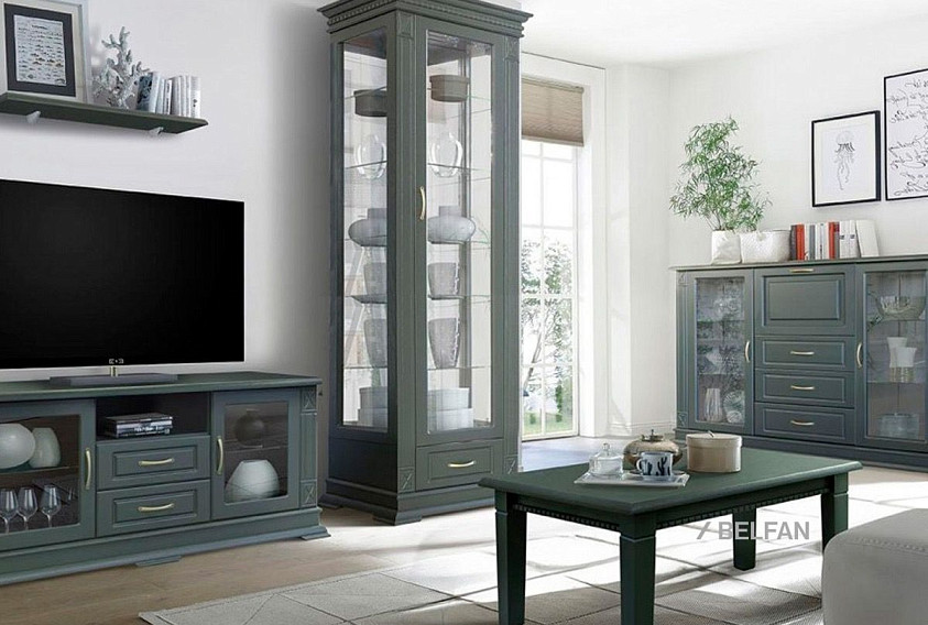 Идеальным дополнением к гостиной, меблированной в классическом стиле, станет однодверный шкаф с витриной из коллекции «Верди Люкс». Несмотря на свою массивность и основательность, этот предмет мебели не займет много места в Вашей комнате, а только лишь, наоборот, станет ее украшением и изюминкой. Благородные цвета крашения вкупе с зеркальными полками и задней зеркальной поверхностью шкафа подчеркивают изысканность, свойственную классическому стилю, а декоративная резьба на пилястрах и фигурный цоколь придают шкафу утонченности и «воздушности». Вместительный выдвижной ящик делает его не только красивым, но и функциональным.