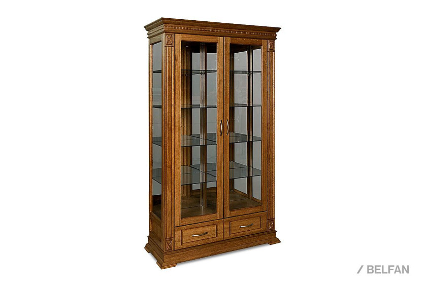 Идеальным дополнением к гостиной, меблированной в классическом стиле, станет двухдверный шкаф с витриной из коллекции «Верди Люкс». Несмотря на свою массивность и основательность, этот предмет мебели не займет много места в Вашей комнате, а только лишь, наоборот, станет ее украшением и изюминкой. Благородные цвета крашения вкупе с зеркальными полками и задней зеркальной поверхностью шкафа подчеркивают изысканность, свойственную классическому стилю, а декоративная резьба на пилястрах и фигурный цоколь придают шкафу утонченности и «воздушности». Вместительный выдвижной ящик делает его не только красивым, но и функциональным.